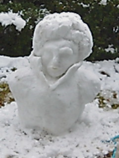 そして今まさしくこの雪だるま、ふりしきる雨をじっと耐え忍び漢の哀愁と忍耐を表現している。